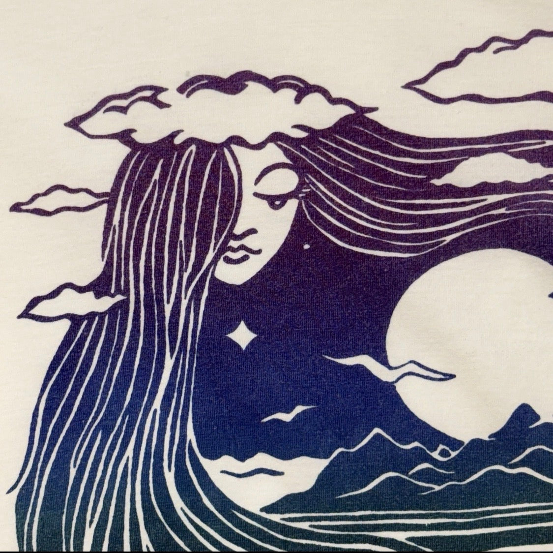 Vintage 1980’s Swan 100% Cotton, Island Girl Linograph Style Print Tee Shirt, Med