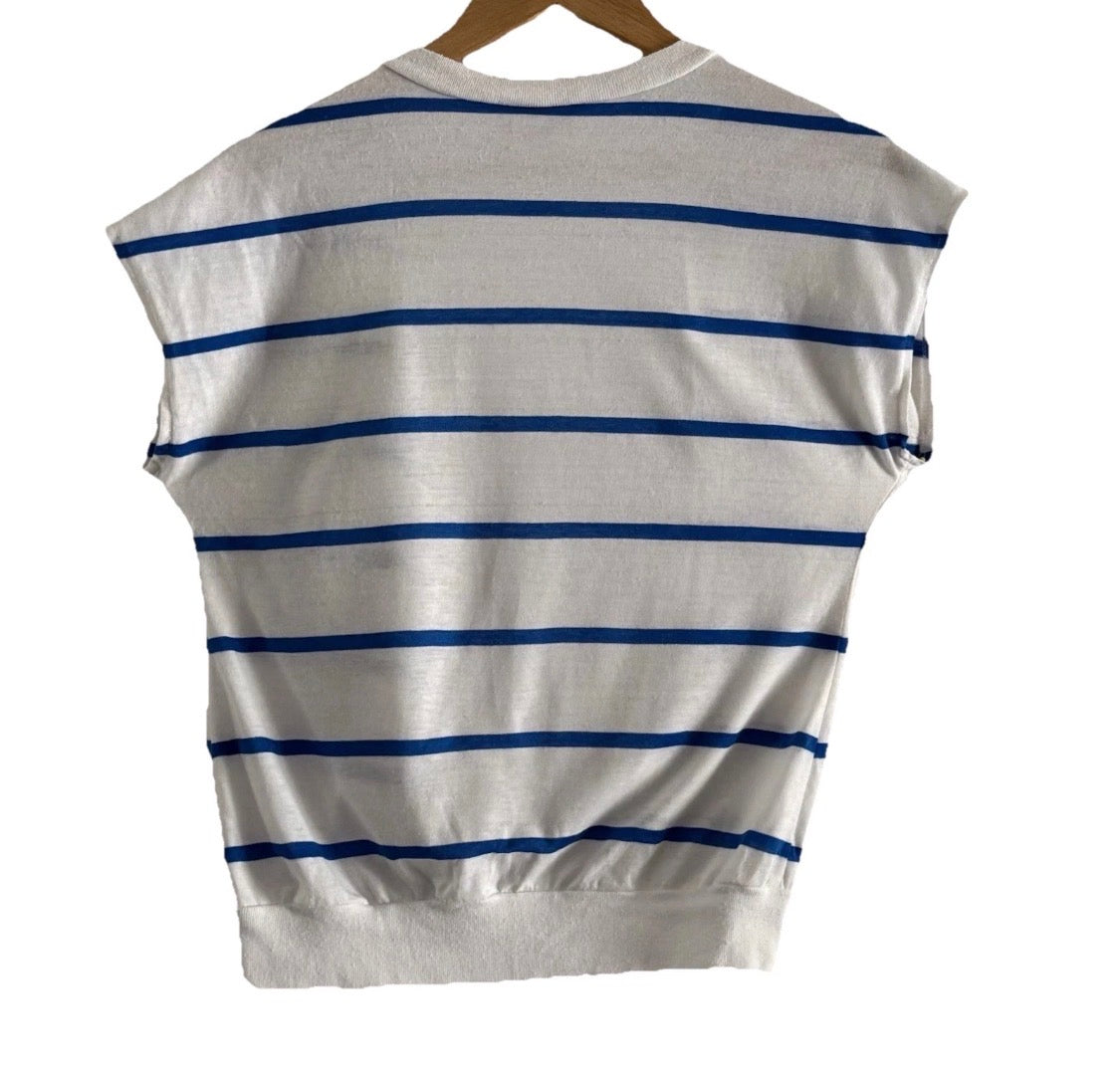 Vintage 1980’sAmerica America Cotton Jersey Stretch Knit Vest Blue White Stripe