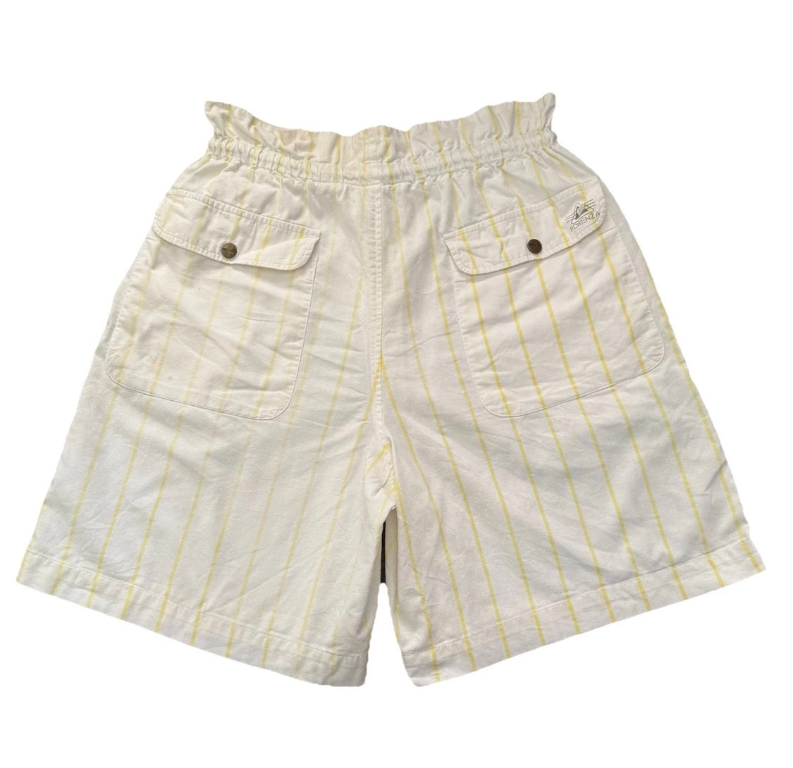 Vintage 1980s Forenza High Rise White Yellow Stripe Shorts, Women’s Small
