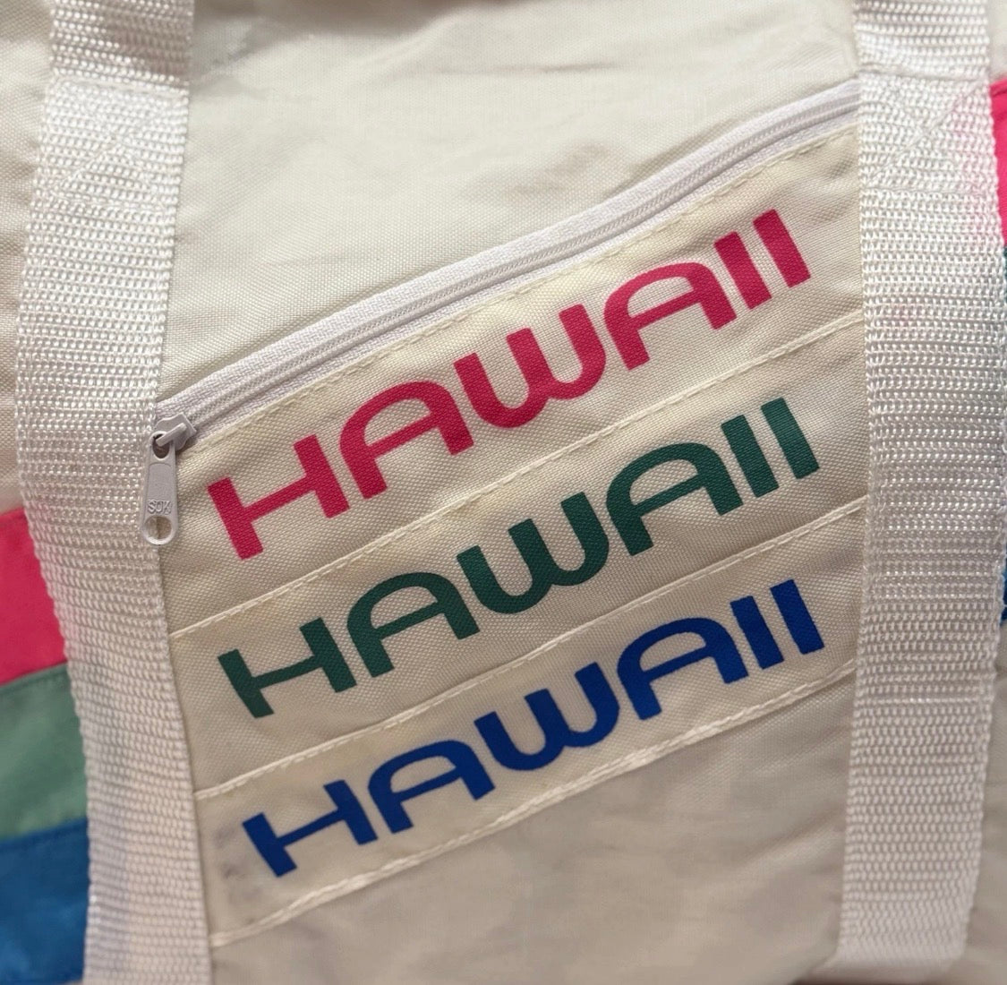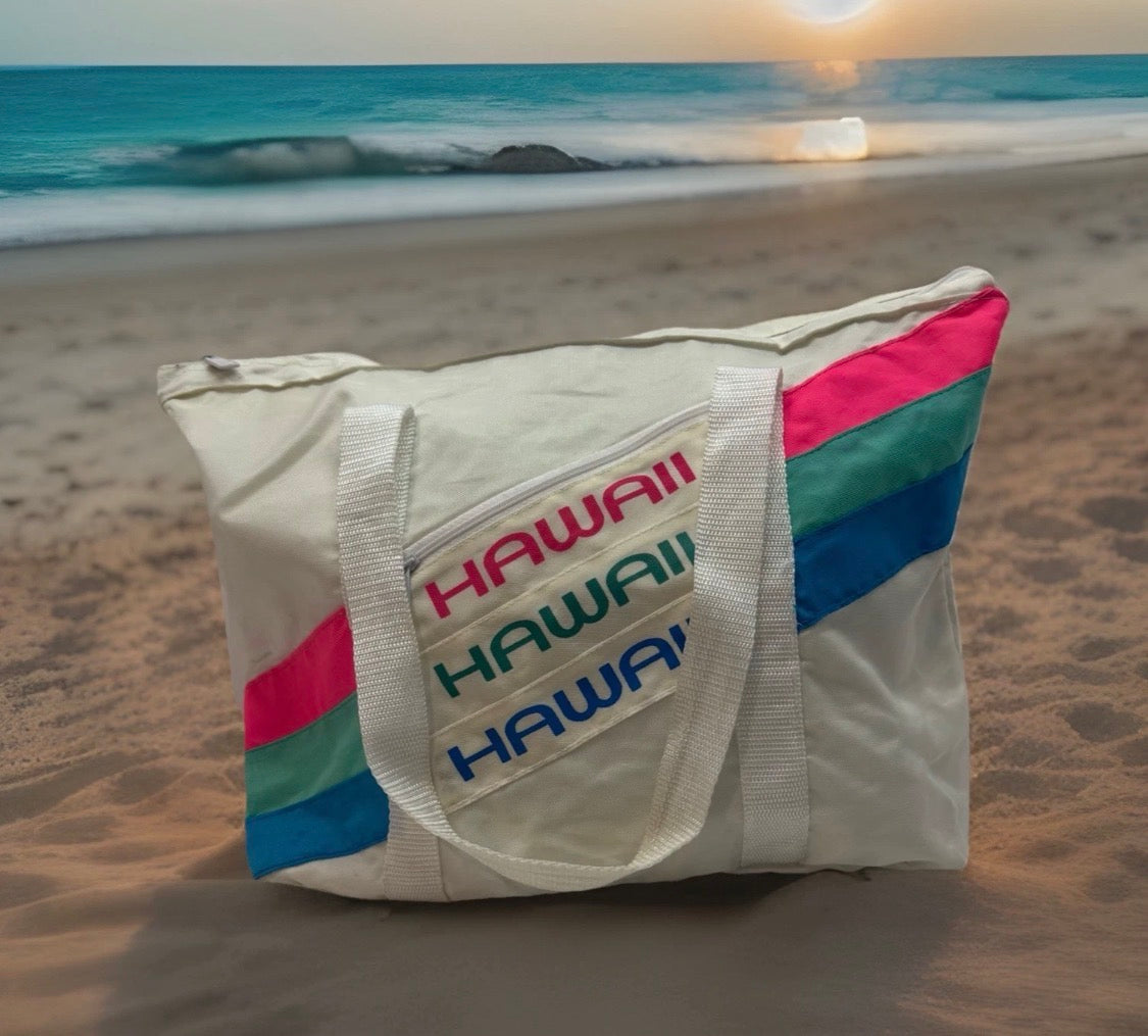 Vintage 1990s Hawaiian Voyager Nylon Zippered Beach Tote Bag Neon Hawaii 18"x13