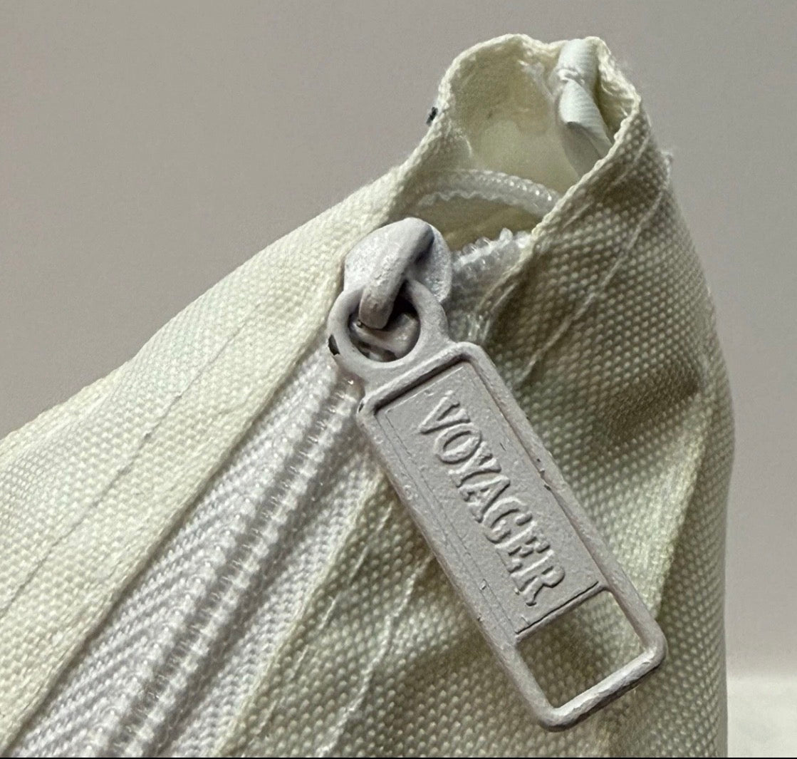 The vinyl lining inside is in great shape, small pink staining on interior pocket. All zips are in perfect working order.